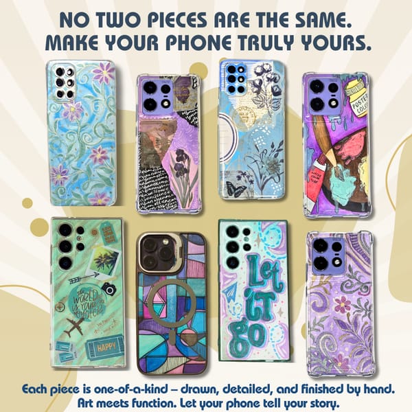 Transform your everyday phone into a work of art. Our hand-drawn inserts slide effortlessly into transparent cases, adding charm, color, and creativity.