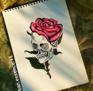 I’ve always believed that art is more than aesthetics — it’s emotion, reflection, and a conversation between who we are and what we face. This piece, "From Shadows to Bloom", is one such dialogue. A skull and a rose — two seemingly opposing elements — combined into one form to tell a story that’s deeply personal and universally human.