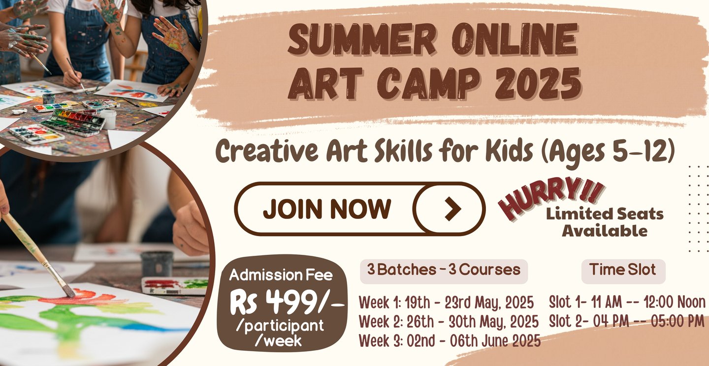 Join our fun, skill-packed online art courses designed for kids ages 5-12 Years. Live sessions. Personalized guidance. Lasting creativity.